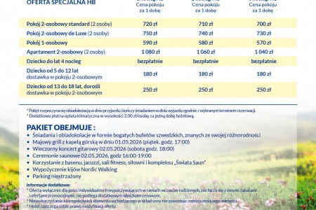 30.04-03.05 - MAJÓWKA 2026 w SPA Hotelu Jawor *****