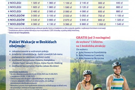 * Pobyt rozpoczyna się obiadokolacją w dniu przyjazdu i kończy śniadaniem w dniu wyjazdu zgodnie z wybranym terminem rezerwacji.