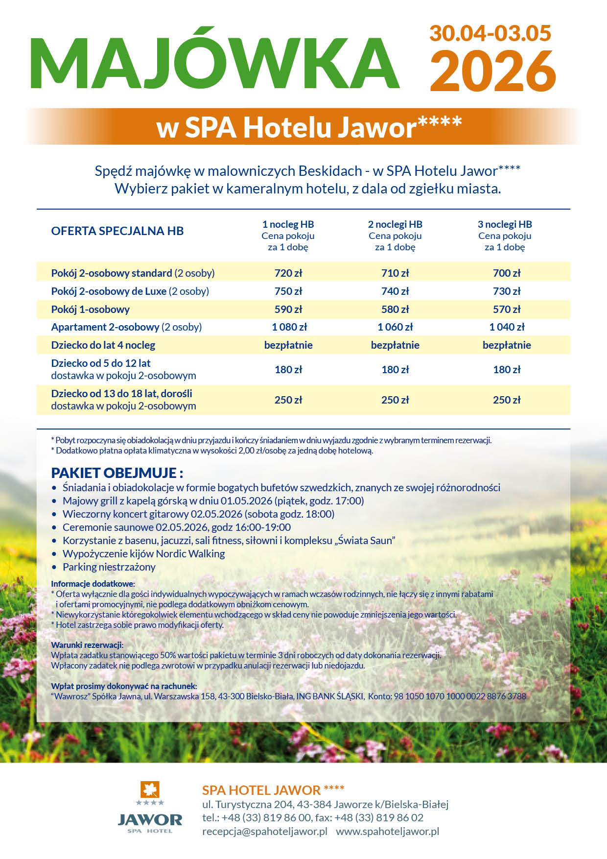 30.04-03.05 - MAJÓWKA 2026 w SPA Hotelu Jawor *****